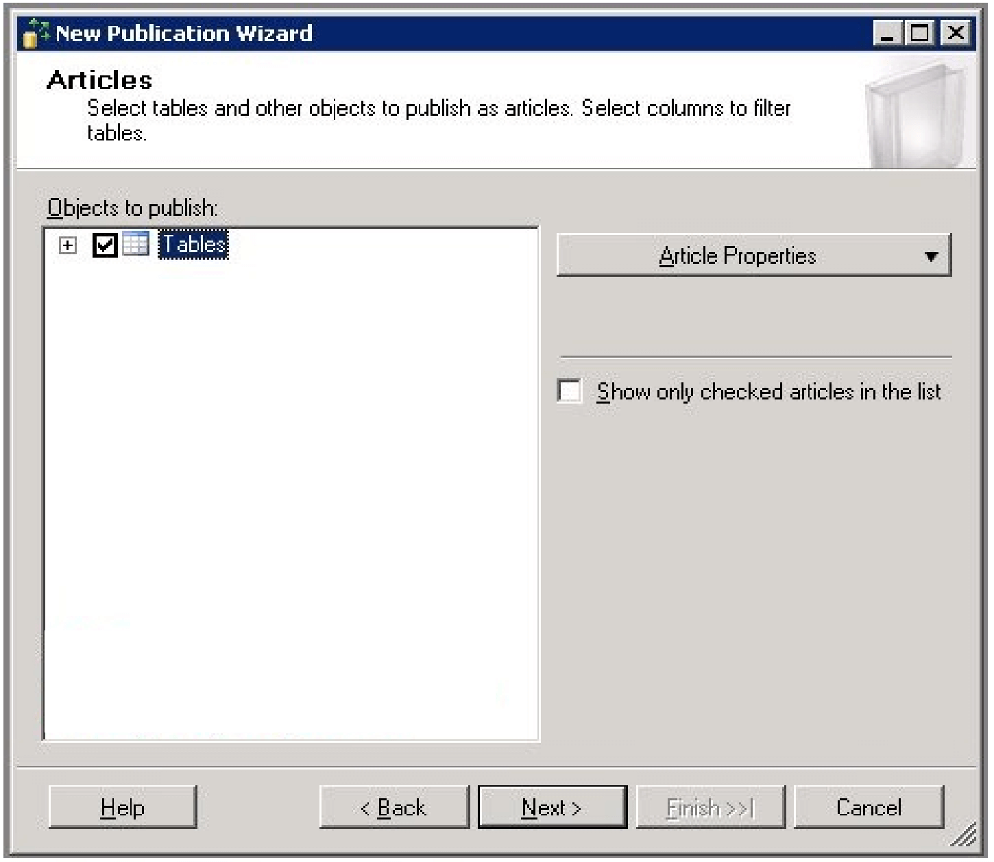 5.下一步是选择要作为文章发布的表格,然后单击下一步。 选择除以下表以外的所有表: