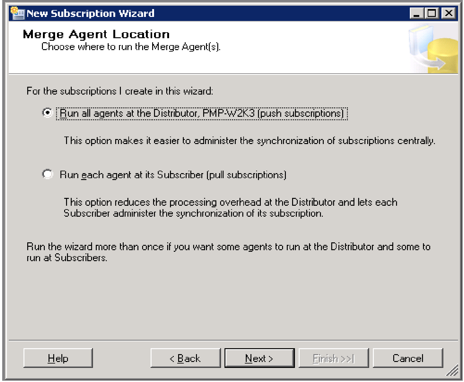 3.选择运行合并代理的位置。 选择如下屏幕截图中所示的第一个选项。 单击下一步。