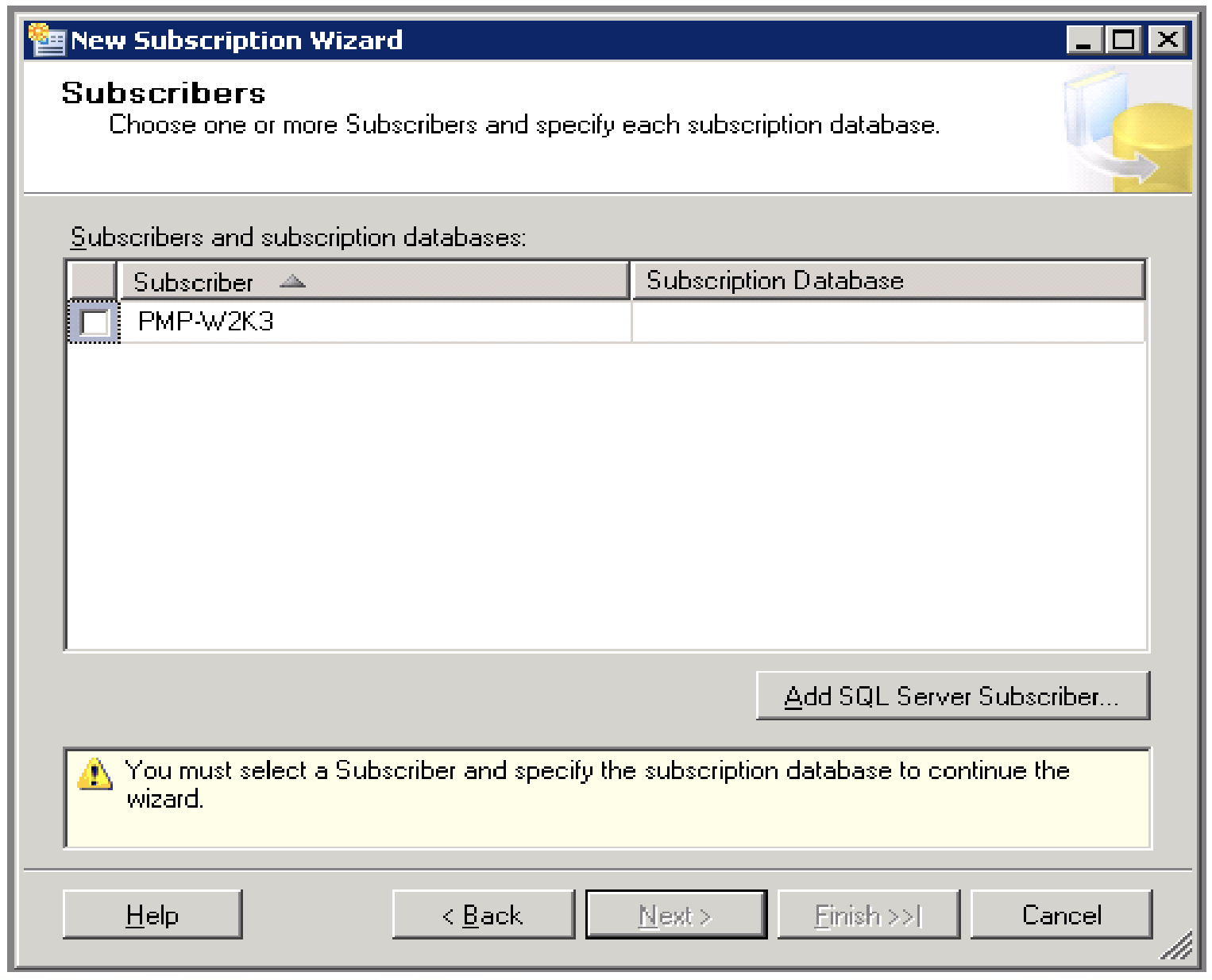 4.[强制]选择订阅者,并选择每个订阅的数据库。 单击下一步。