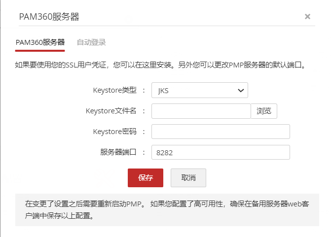 - 在打开的 PAM360服务器页面中,安装属于SSL 证书的密钥存储文件和/或更改默认的 PAM360 服务器端口。