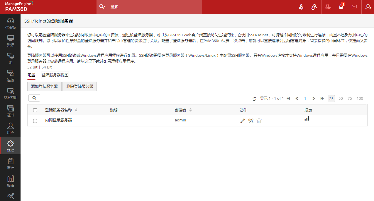PAM360简化了整个数据中心的远程访问管理,通过配置登录服务器,使管理员可以高效的进行SSH,Telnet连接,克服网络分段造成的访问障碍。