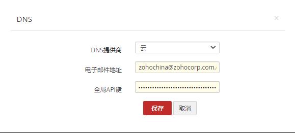 - 对于 Cloudflare DNS ,请输入与 Cloudflare 帐户关联的电子邮件地址和全局 API 密钥。