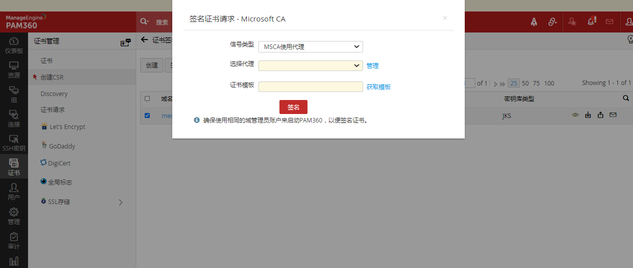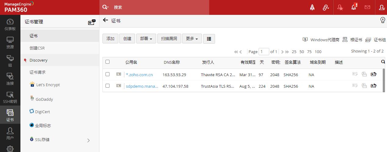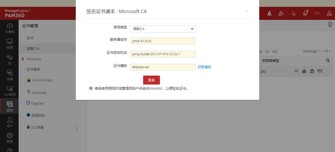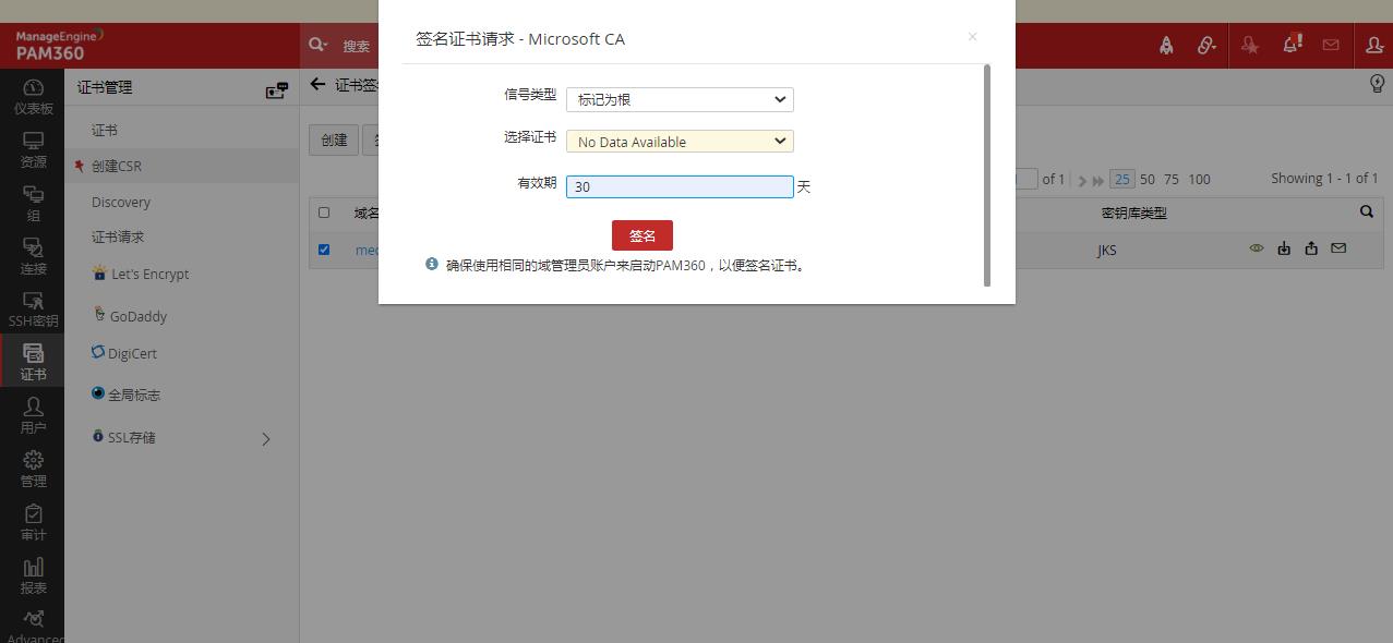 证书已签名,您可以在 PAM360 的证书存储库中找到。