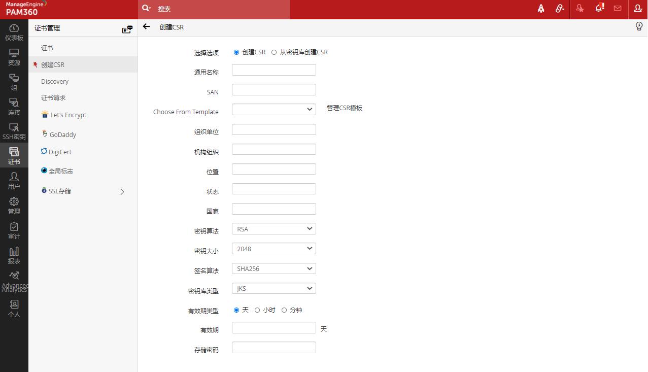 - 签名类型 - 用户管理允许您通过PAM360为用户账户生成并签名证书。