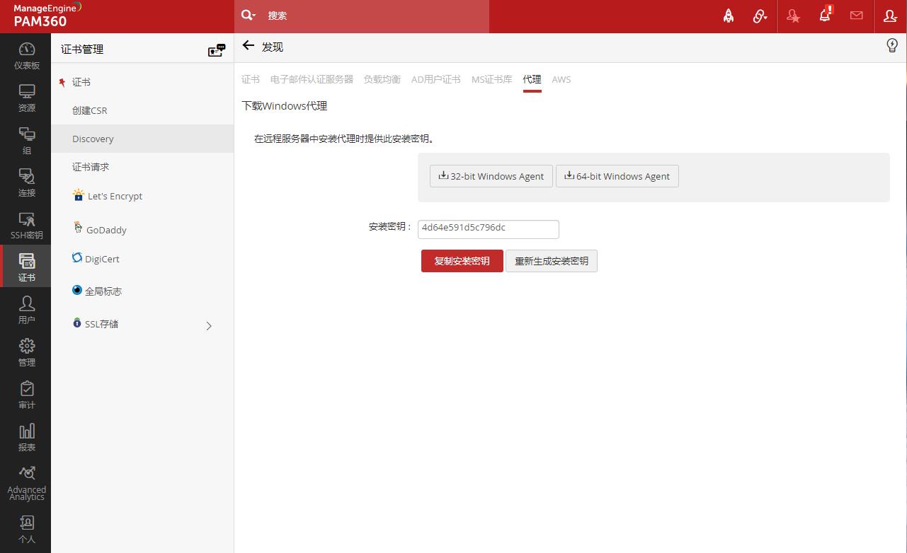 注意:代理安装后,安装密钥将会作废,如要安装代理到其他目标机器,则需要从 PAM360 服务器重新生成,再在目标服务器上使用。