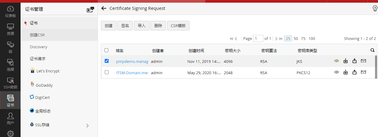 CSR签名后,可以在证书>>证书列表下查看已颁发的证书。