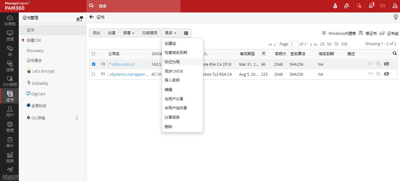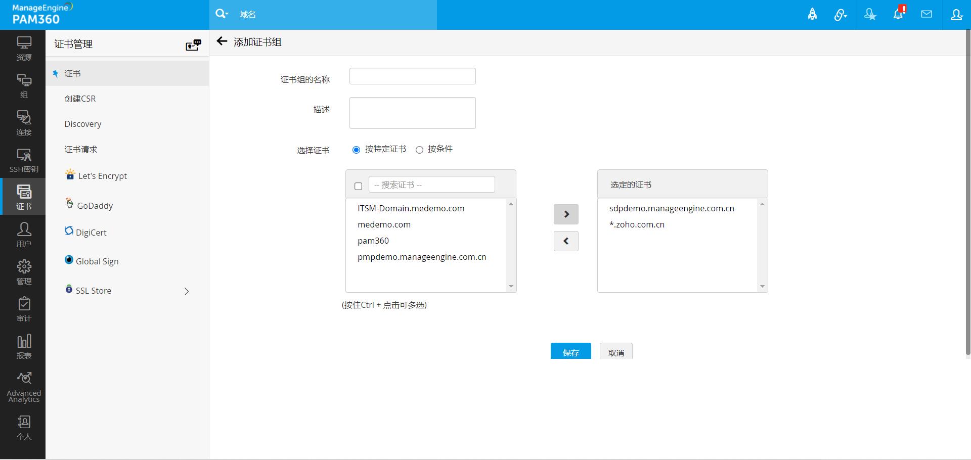 PAM360允许您将SSL证书组织到各种逻辑组中,并在组中批量执行操作。