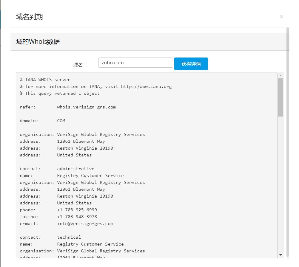 获取域到期详细信息,PAM360分两步查询WHOIS服务器。第一次查询提供了由域名注册商注册域名的WHOIS服务器的详细信息。第二次查找提供有关域的信息,例如所有者详细信息,到期日期等。所有这些操作都是从PAM360的界面自动进行的。