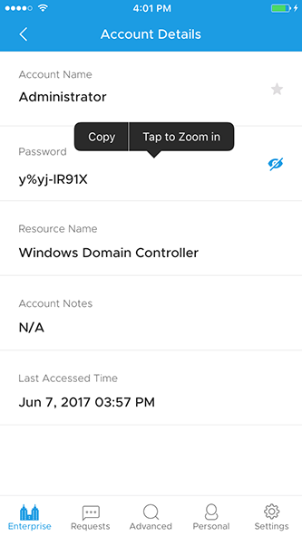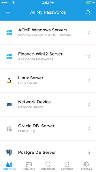 PAM360 提供本机 iOS 应用,使企业 IT 管理员和用户能够随时随地安全地检索密码。