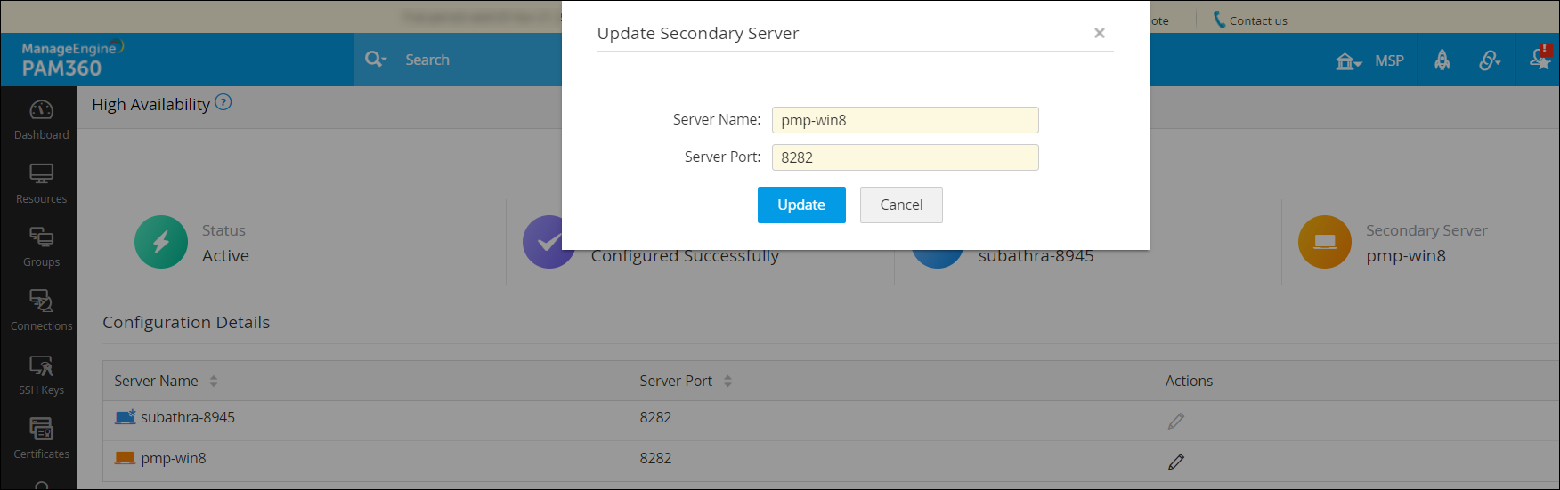 1.发布 HA 配置:如果更改主 PAM360 服务器的端口,则高可用性设置将不起作用。 您需要更改并重新配置设置。