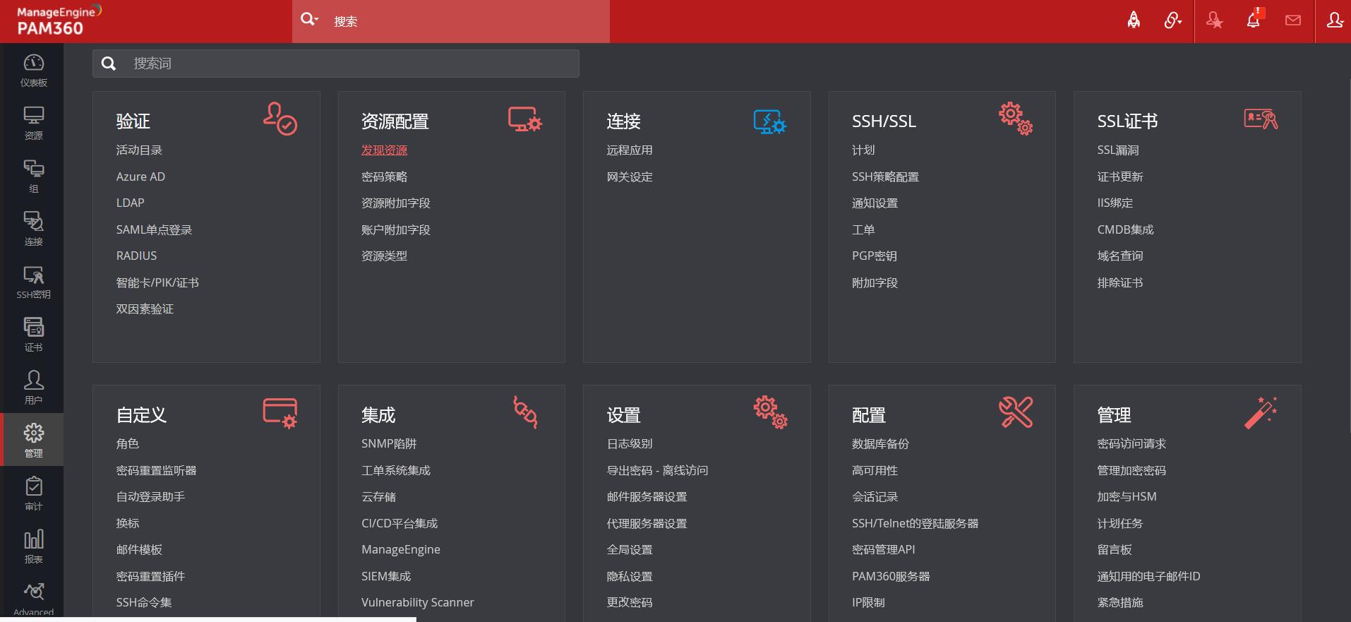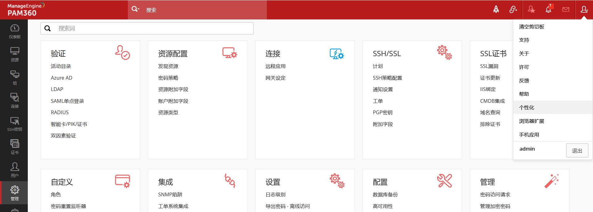 - 从默认页签下拉菜单中,您可以选择登录 PAM360后,缺省加载的页面,如:资源、组、用户或任何其他功能首页。