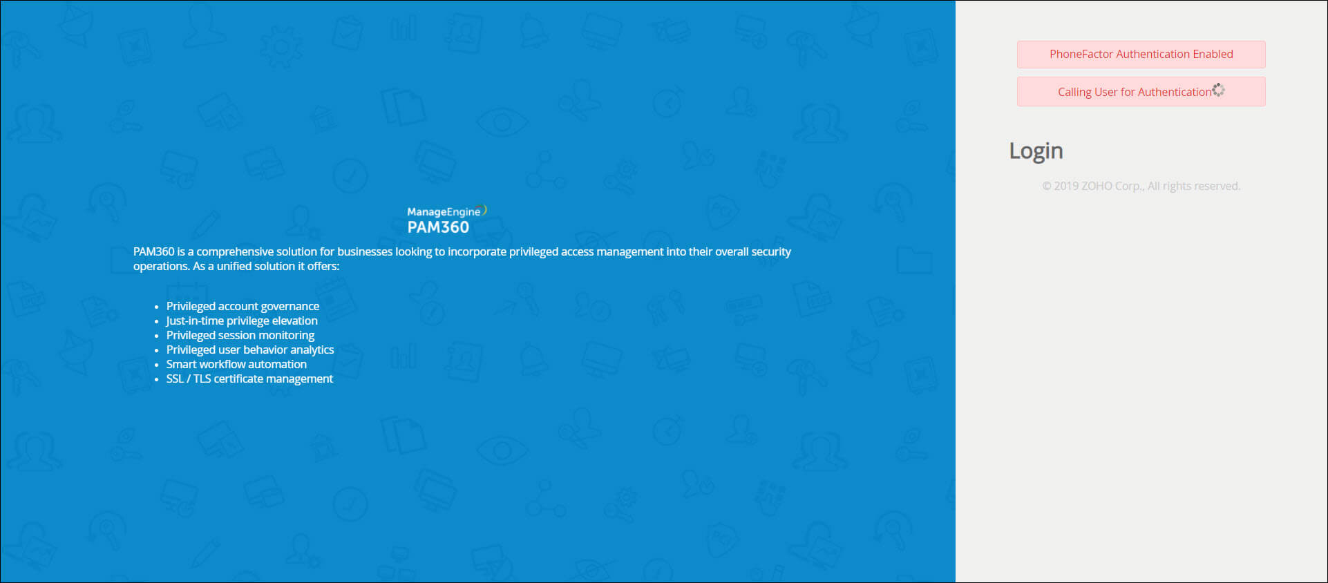 ManageEngine的合作伙伴PhoneFactor是提供基于电话的双重身份验证的国际知名公司,为PAM360提供简单高效的双重身份验证。