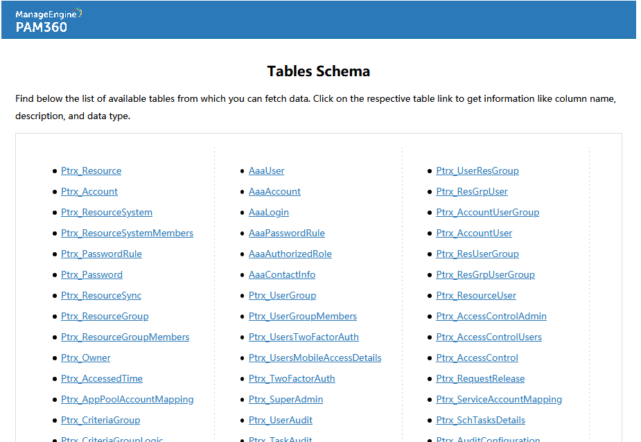 您可以通过查询语句从PAM360数据库获取相应数据,组织相关报表。您可以参考产品提供的相关表的表结构编写自己的 SQL 查询语句,或自定义此类别下的现有报表的 SQL 查询语句。
