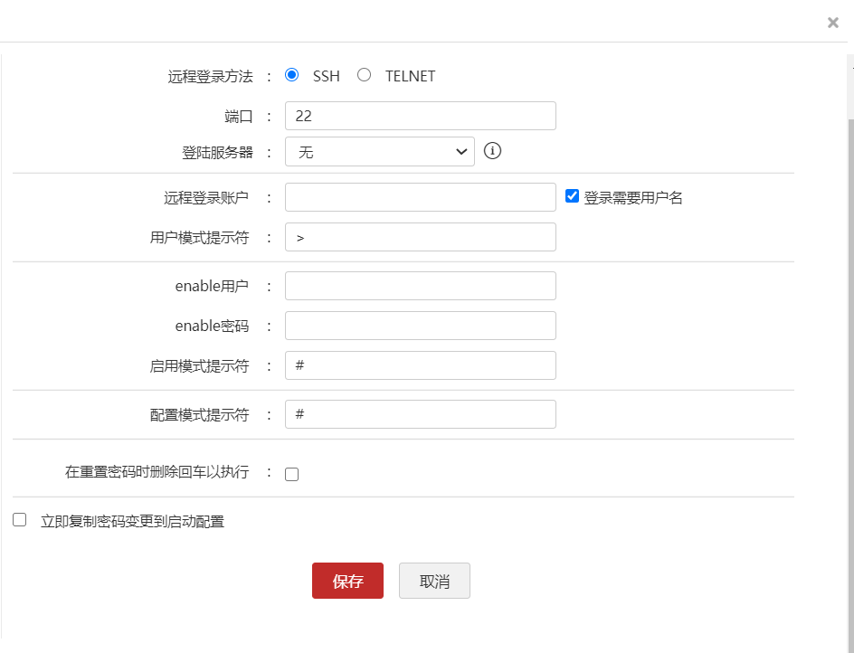 Ⅵ enable密码:用于进入特权模式以执行密码重置。 如果远程登录帐户具有修改密码权限,则不需要指定enable密码。