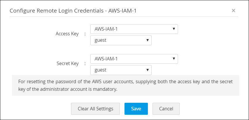 - 请将访问密钥和安全密钥添加到PAM360中,这些密码可以与任意资源类型的帐户关联,用于远程同步。