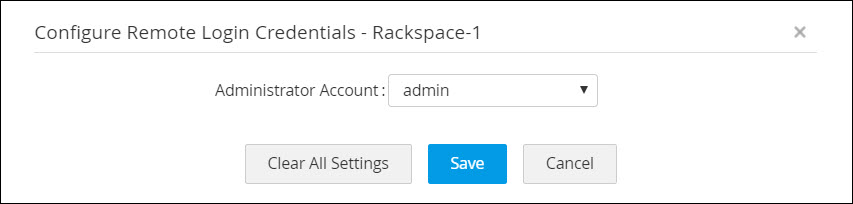 - 要执行密码重置,请导航到资源 >> 资源操作 >> 配置远程密码重置,并选择一个具有Rackspace管理员凭证的管理员账户。