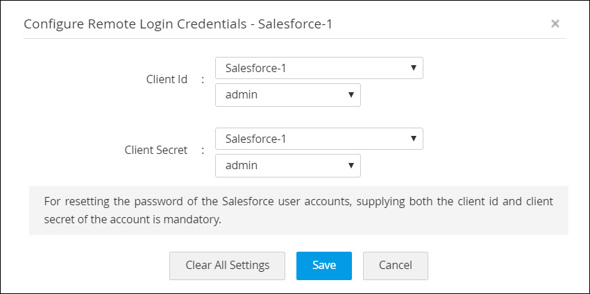 - 请导航到资源 >> 资源操作 >> 配置远程密码重置,此操作需要管理员帐户的客户端ID和客户端密钥。