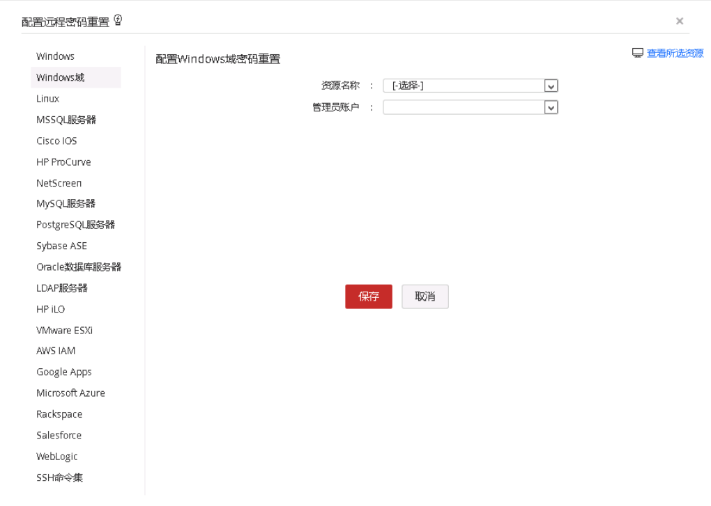 - 如果您没有条件采用这种方式,您可以指定资源上的一个本地账户来执行重置密码,请导航到资源 >> 资源操作 >> 配置 >>远程密码重置并选择管理员帐户。