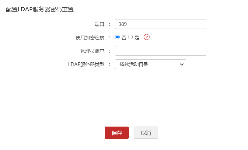 执行LDAP服务器的密码重置需要管理员权限,因此,请先指定管理员帐户。