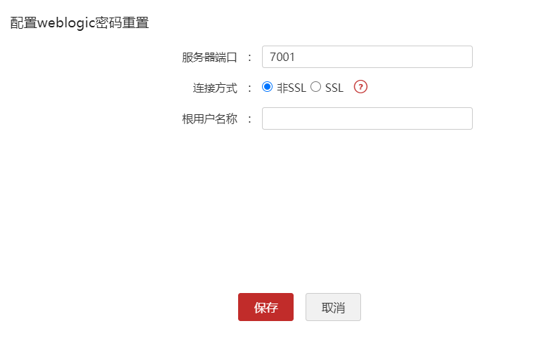 由于WebLogic服务器通过JMX进行密码重置,所以您需要先指定管理员凭据。