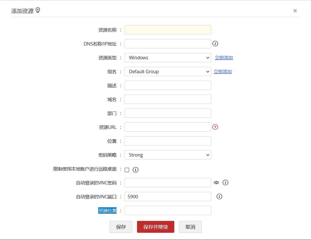 当您创建"字符/数字/密码/日期"类型的附加字段时,这些字段通常以全局方式创建所有资源类型并立即生效。 但是,您也可以选择在"添加资源"(或)"添加帐户"窗口中仅针对特定资源类型显示这些字段。 要启用此设置,必须禁用其他资源类型的字段。