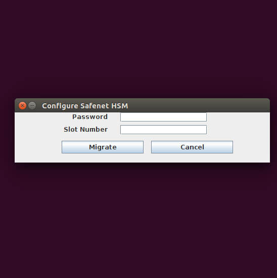在该对话框中,输入SafeNet HSM密码和插槽号,然后单击"迁移。