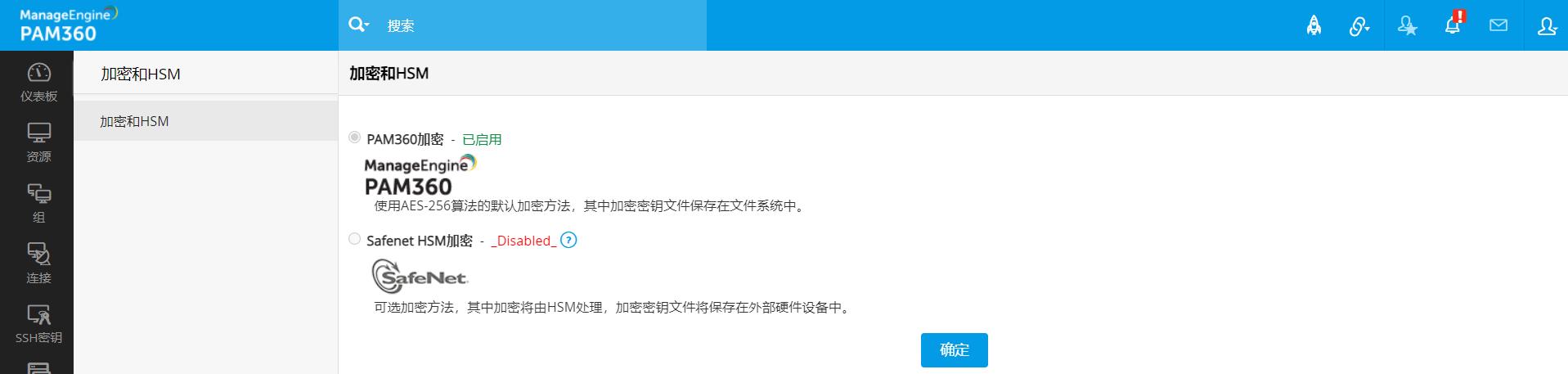 要检查当前对您的数据应用了哪种加密方法,请转到PAM360管理页面,在管理分类下选择加密与HSM。