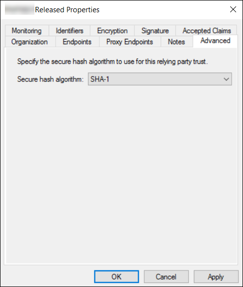 - 在打开的对话框中,切换到"高级"选项卡并指定[SHA 1]作为安全哈希算法,点击确认关闭窗口。