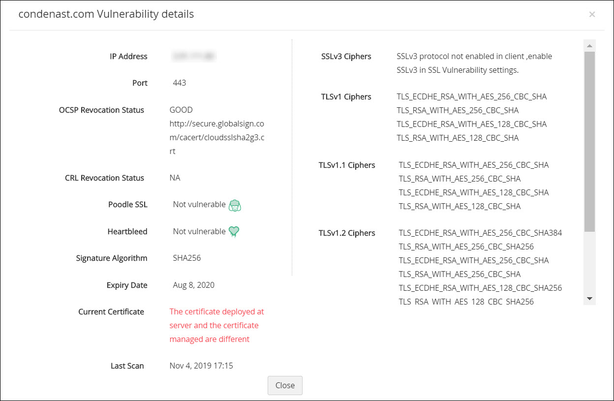 PAM360可帮助检查您的域服务器是否存在Heartbleed错误漏洞,并标记受影响的服务器。