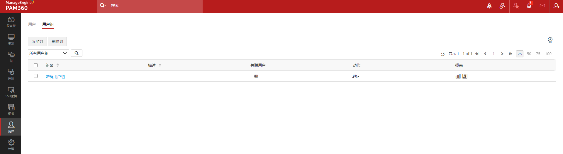 用户可以分组以方便管理,用户分组有助于对资源组进行批量操作,添加到PAM360的资源可以快速分配给一个用户组,不用单独选择每个用户进行分组。