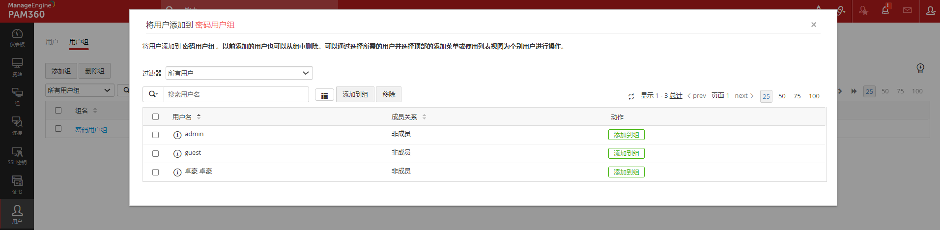 - 点击添加到组可以把非组成员添加到组。