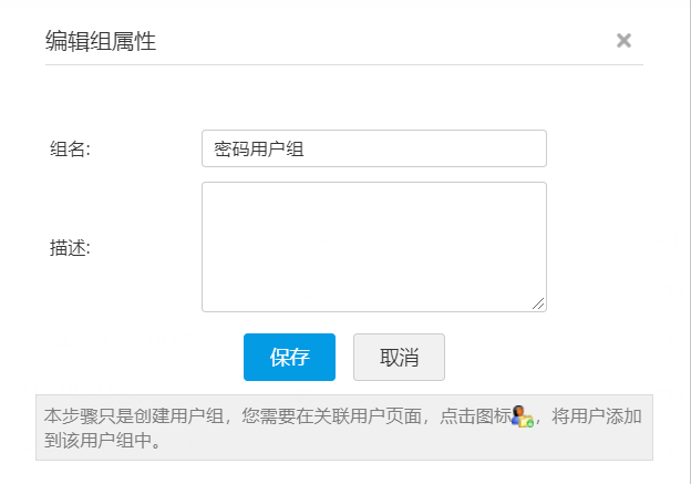 - 在弹出窗口中,输入组名和描述。