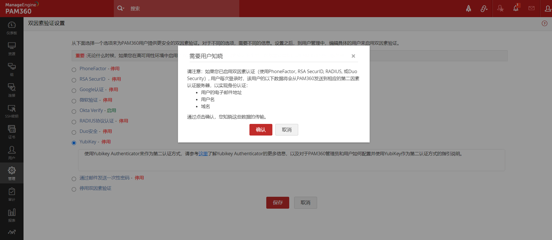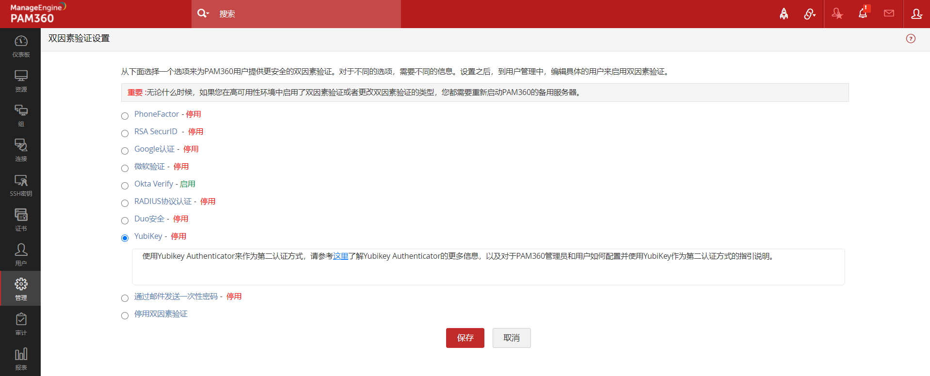 YubiKey是由Yubico制作的物理密钥,可确保用户身份验证的安全可靠。您可以参照本文档中的详细步骤在 PAM360 中使用 YubiKey 设置双因素身份验证。