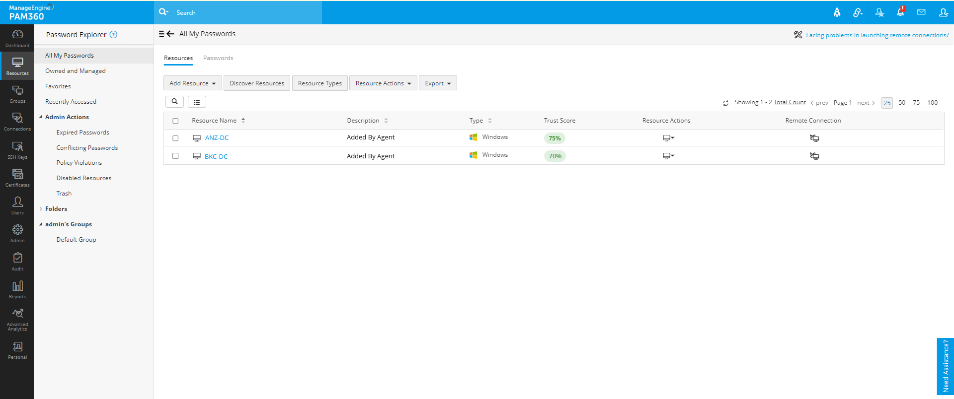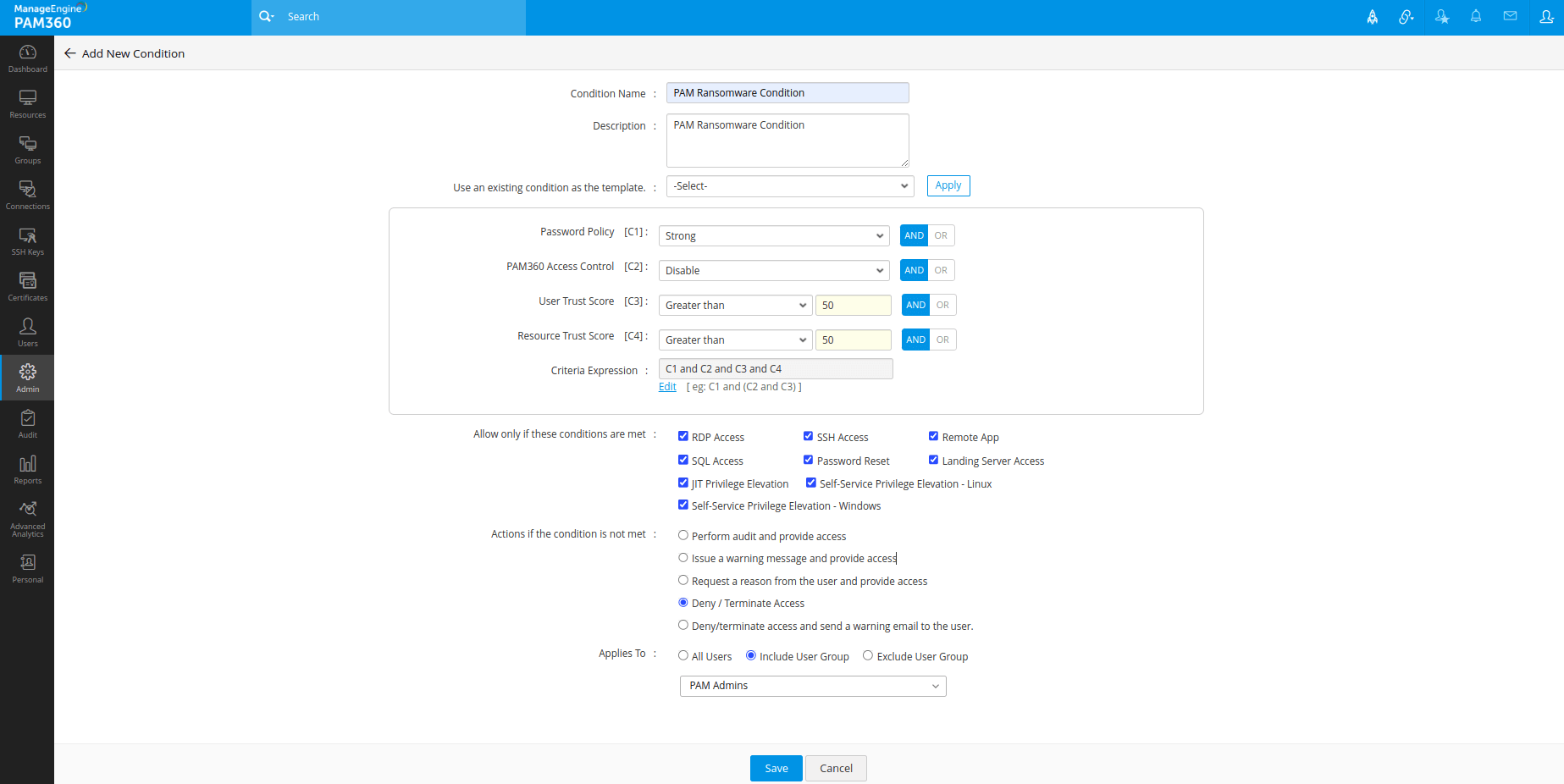 PAM360制定的信任分数是自适应的,并根据当前用户操作实时更新。这可以准确描述组织中任何用户或设备所构成的信任,并帮助您做出明智的决定。