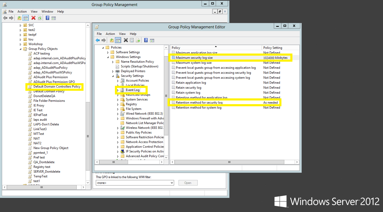 需要定义事件日志大小,以防止由于事件被覆盖而导致审计数据丢失。要配置事件日志大小和保留设置,请遵循以下步骤: