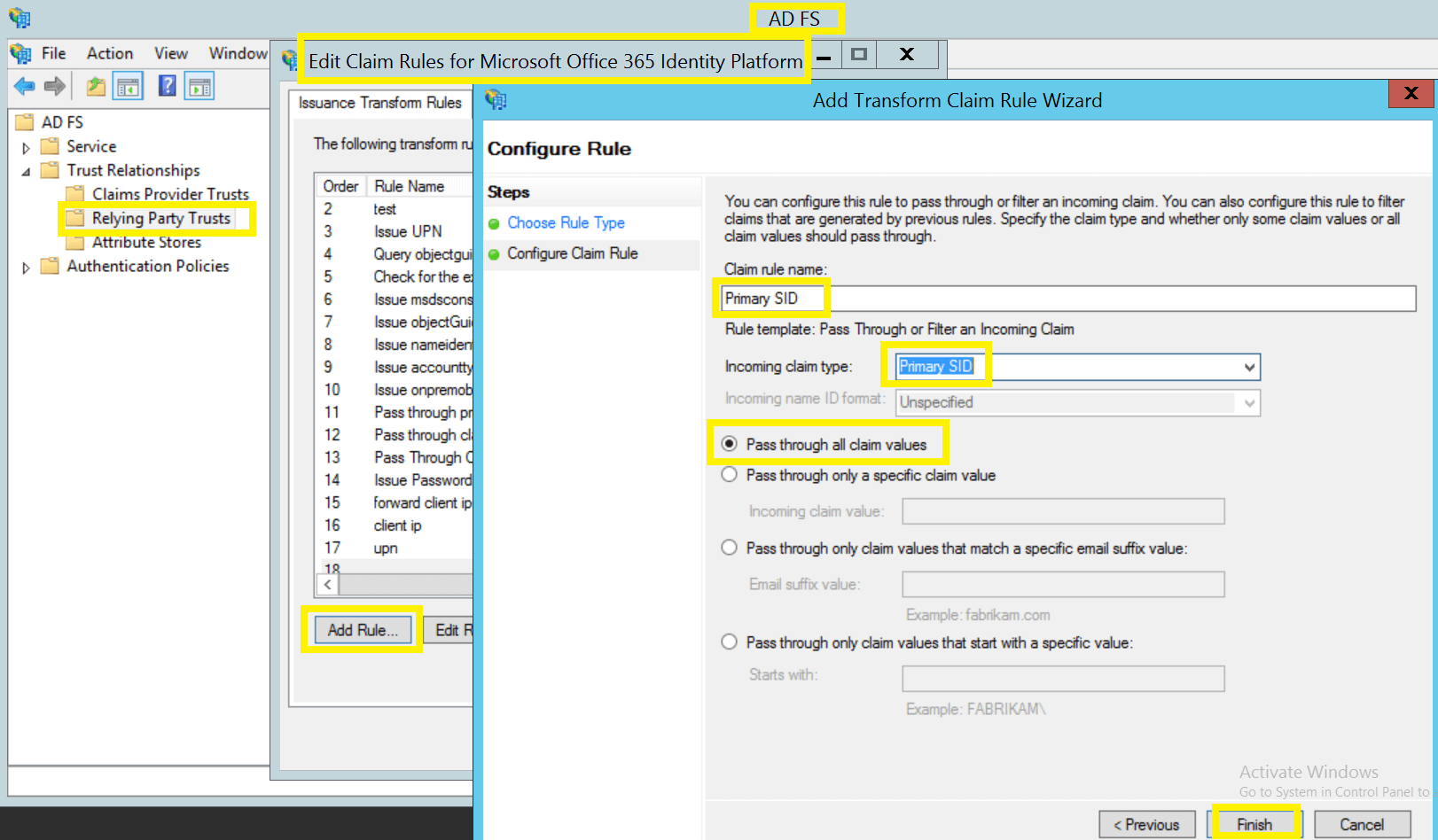 - 打开 AD FS 管理控制台>信任关系>信赖方信任。