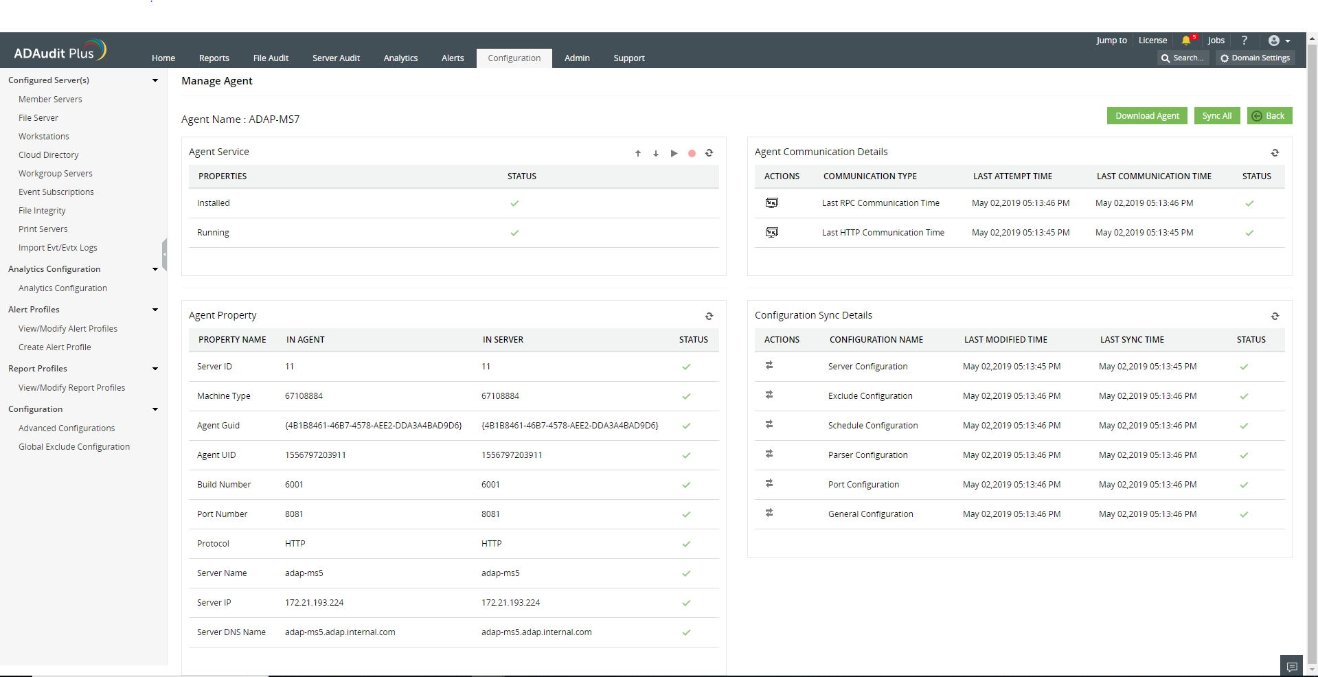- Check if the agent is able to communicate with the ADAudit Plus server.