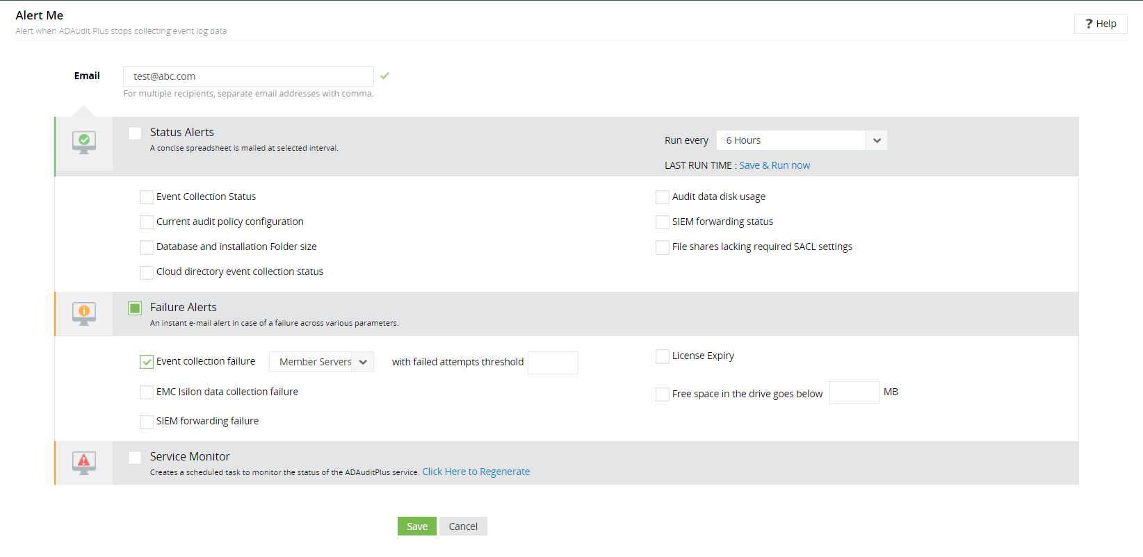 (注意:ADAudit Plus服务帐户应该是Domain Admins组的成员,以便获取服务状态。)