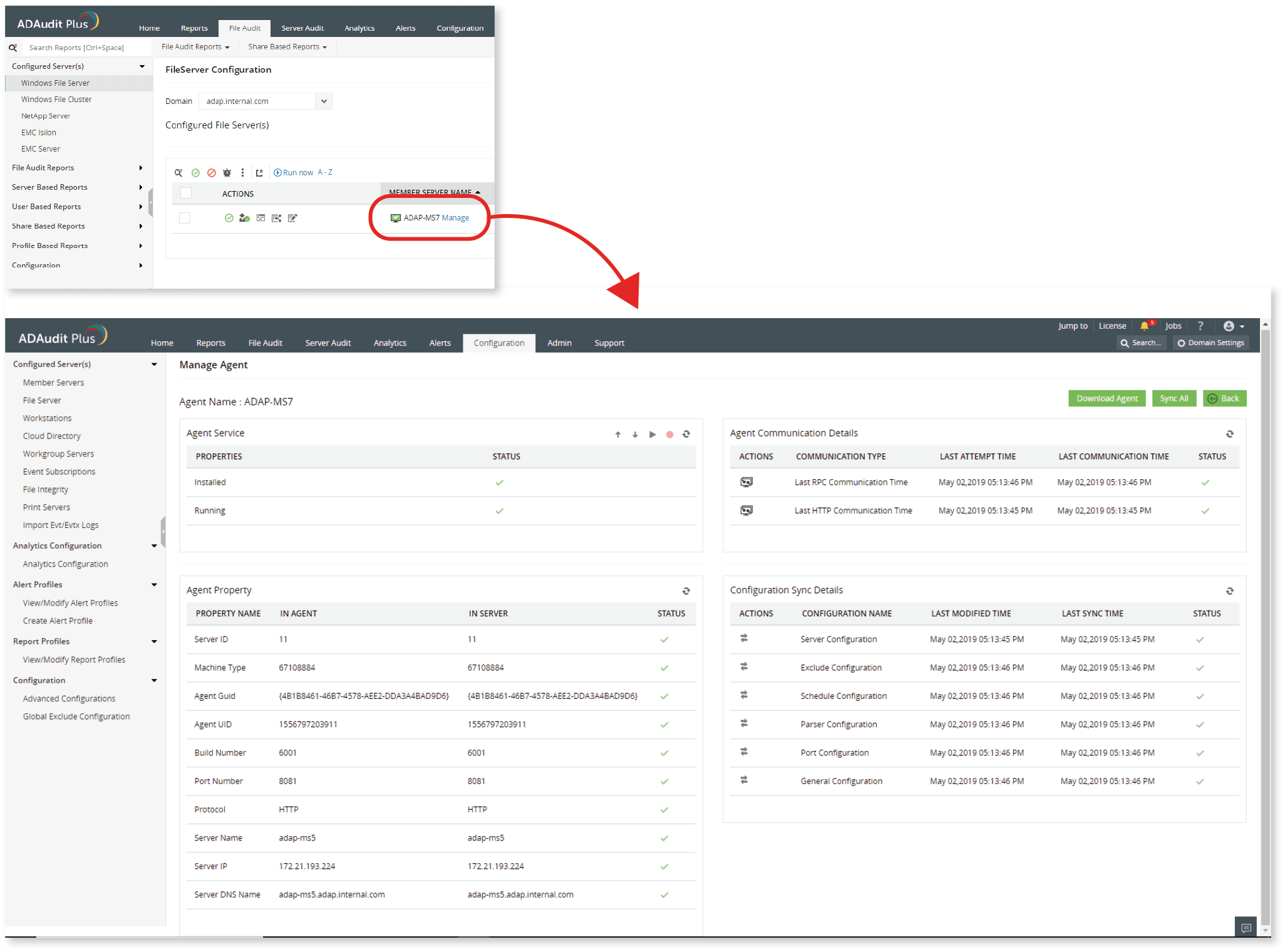 即使没有安装代理,也可以实时从域控制器收集日志。但是,对于工作站,文件服务器和Windows服务器,只能通过安装客户端软件代理来启用实时数据收集。也就是说,忽略安装代理不会妨碍ADAudit Plus的功能。