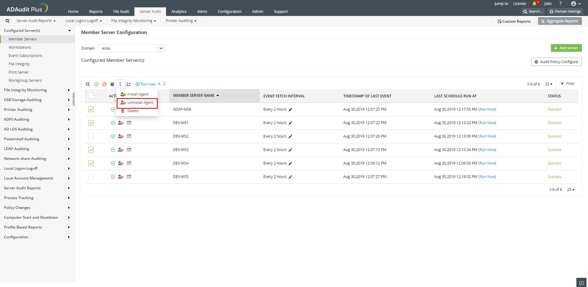 我们建议使用ADAudit Plus安装代理。如果在任何计算机上安装失败,则ADAudit Plus会每30分钟自动重试安装一次代理,最多10次失败尝试。