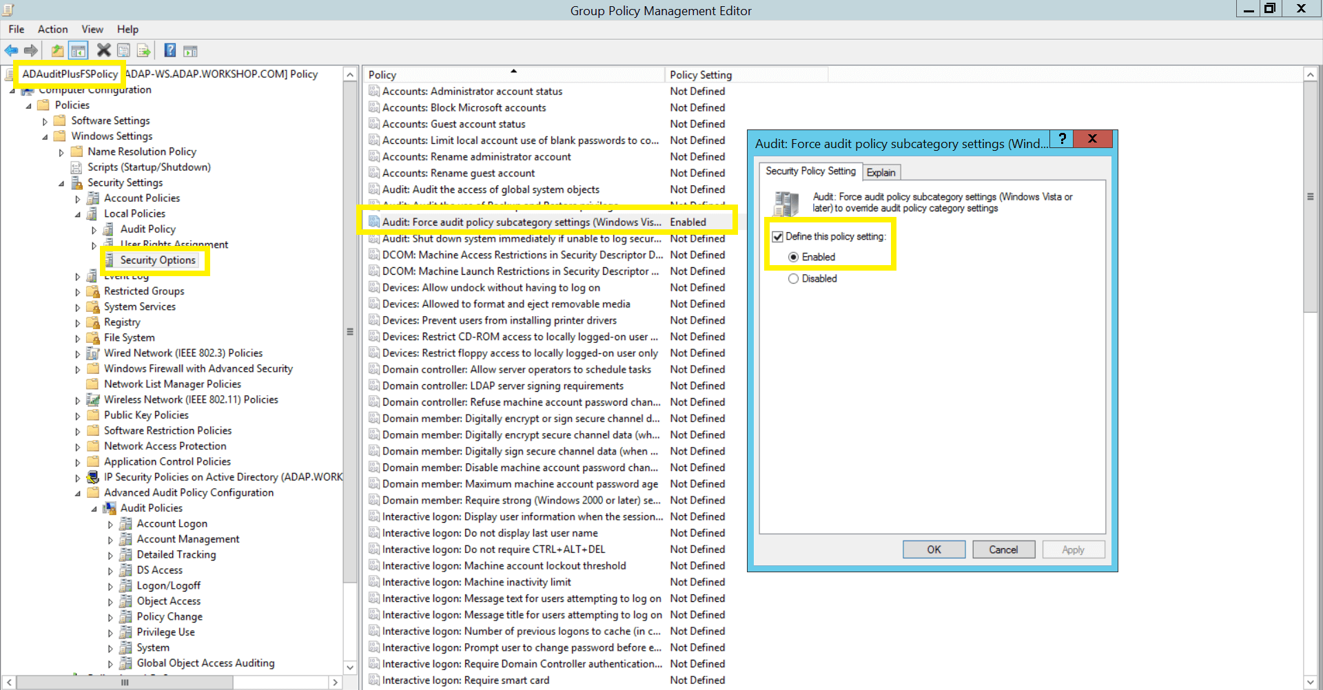 When using advanced audit policies, ensure that they are forced over legacy audit policies.