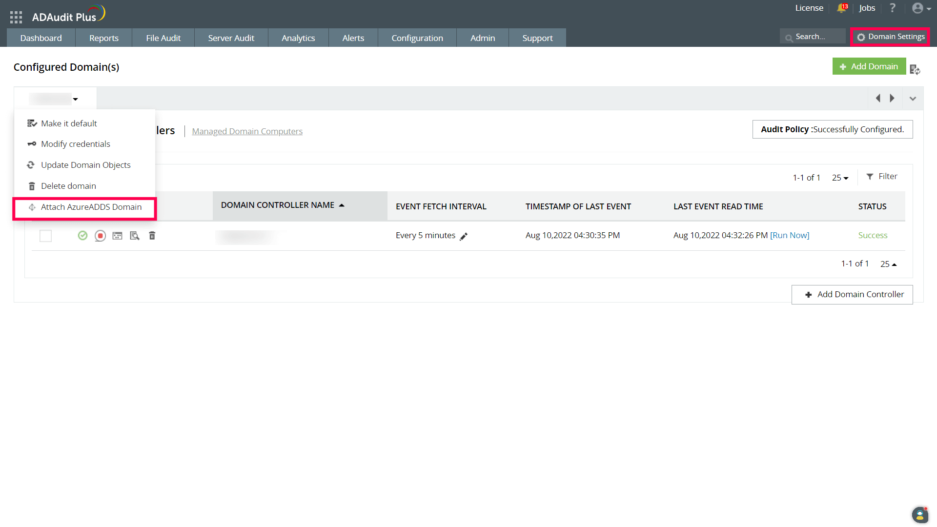如果要在ADAudit Plus中添加新的Azure AD DS域,请执行以下步骤: