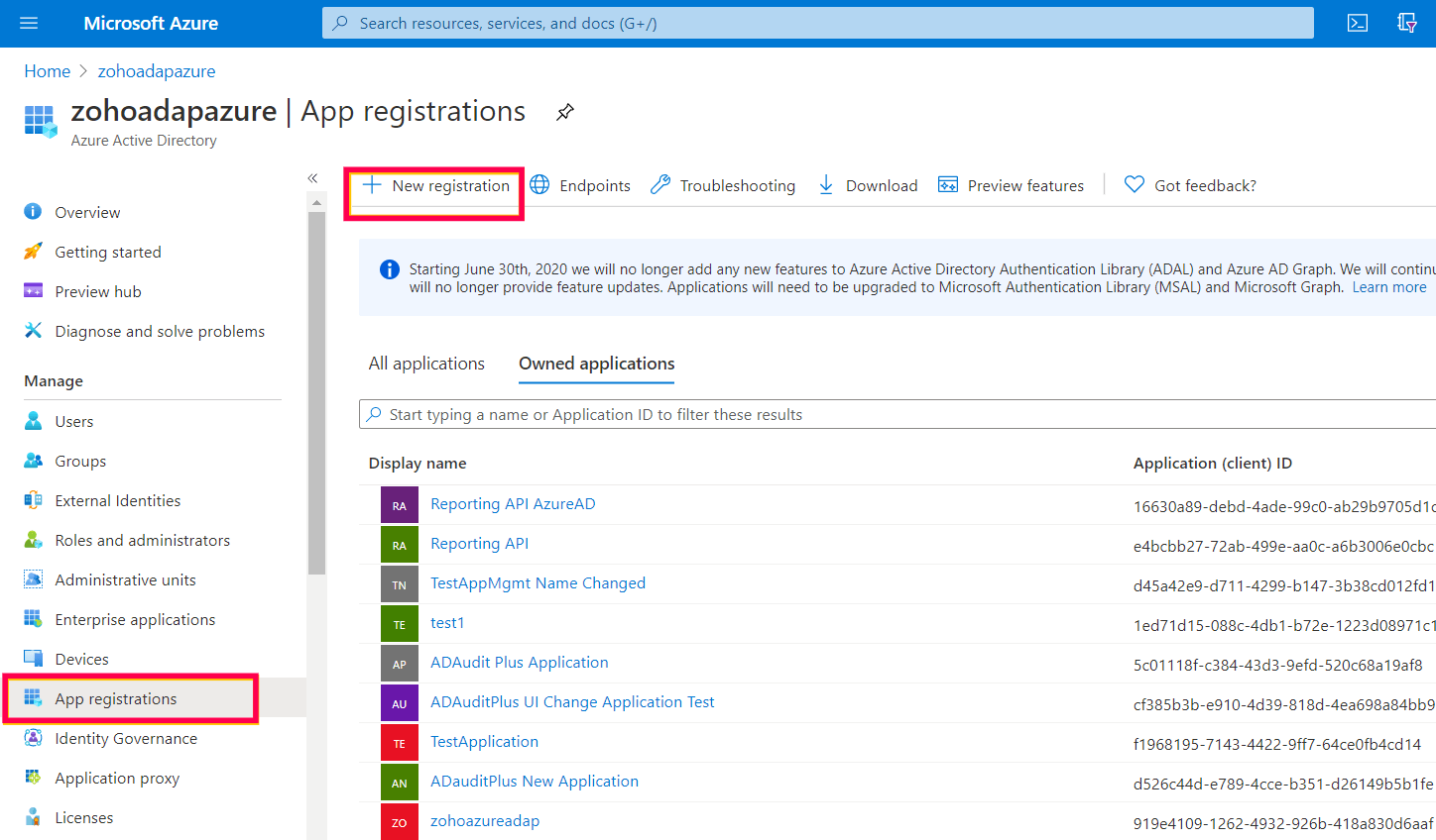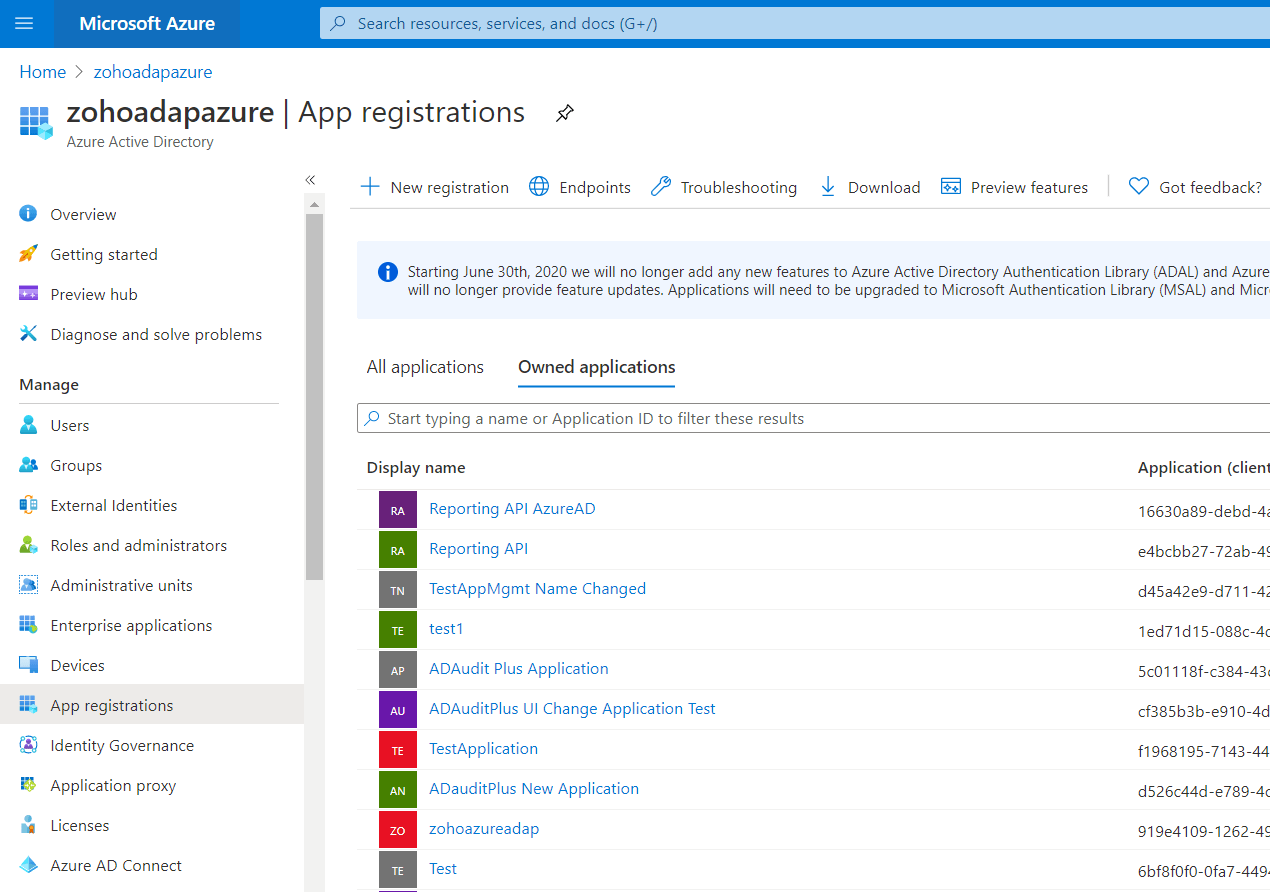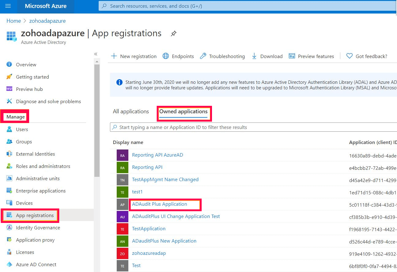 转到管理→应用注册。在“拥有的应用程序”下选择应用程序。