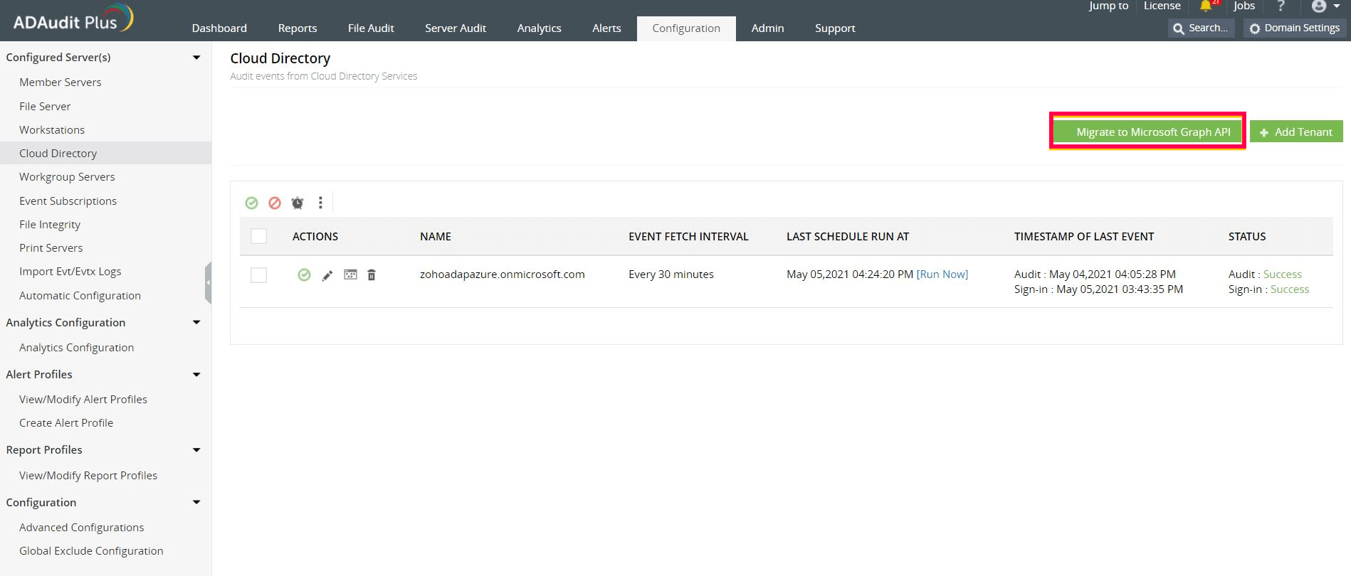 转到配置>已配置的服务器>云目录。