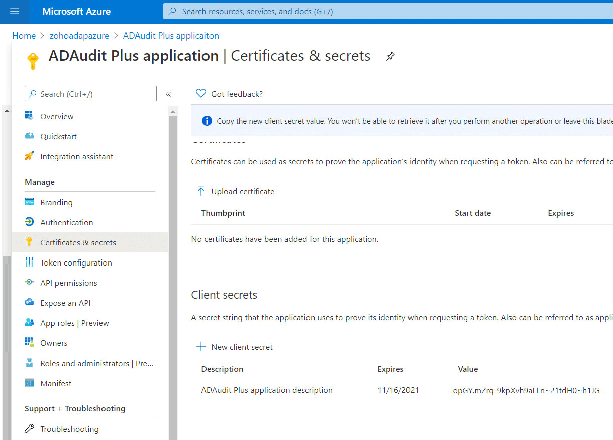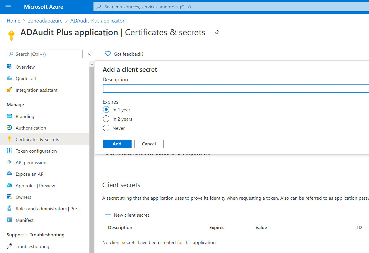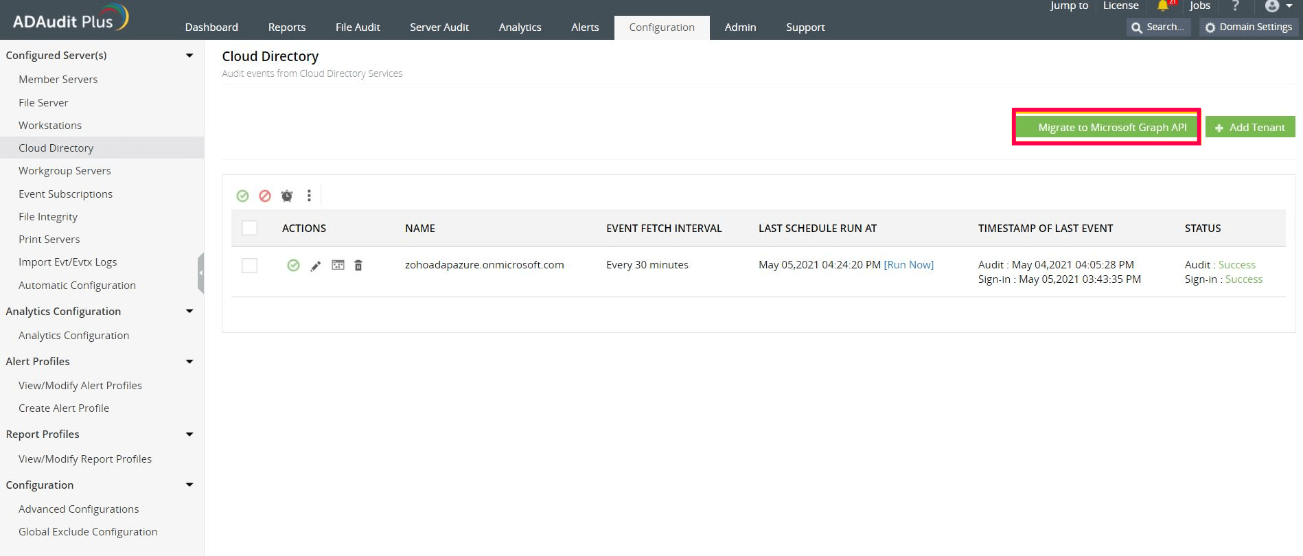可以选择使用 Azure AD 高级许可证或使用 Microsoft 365 许可证审核 Azure AD 环境。借助 Azure AD 高级许可证,ADAudit Plus 使用 Azure 报告 API 从 Azure AD 获取事件,并使用 Microsoft 365 许可证,它使用 PowerShell cmdlet(统一审核日志)从 Azure AD 获取事件。