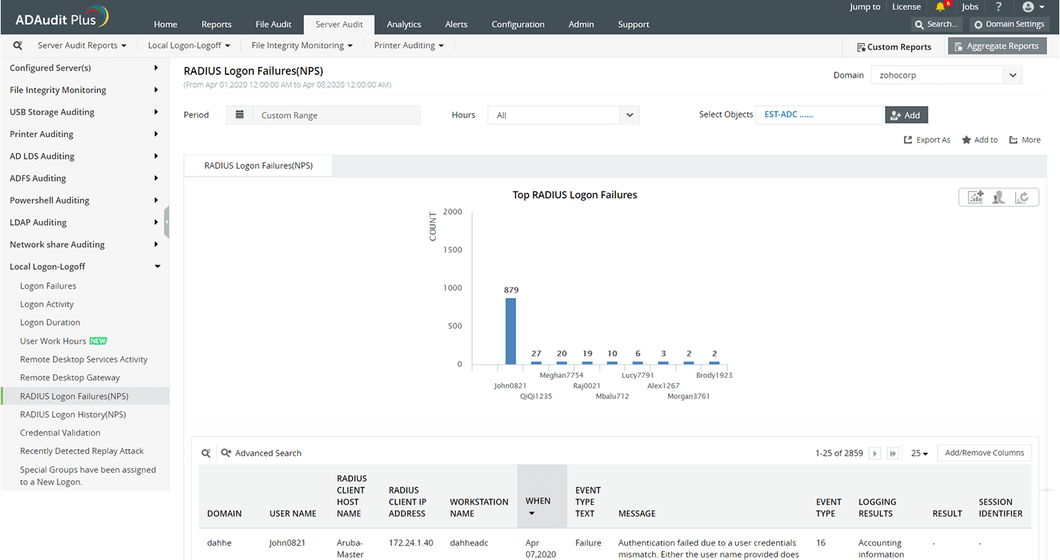 实时监视和报告成功和失败的ADFS身份验证尝试。
