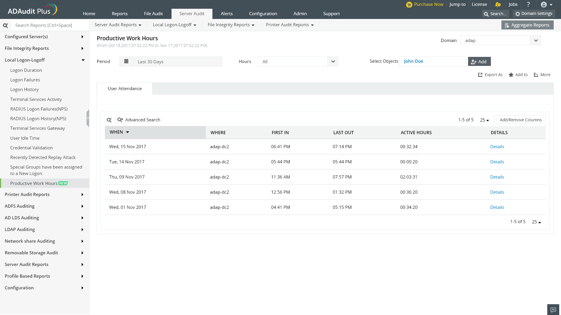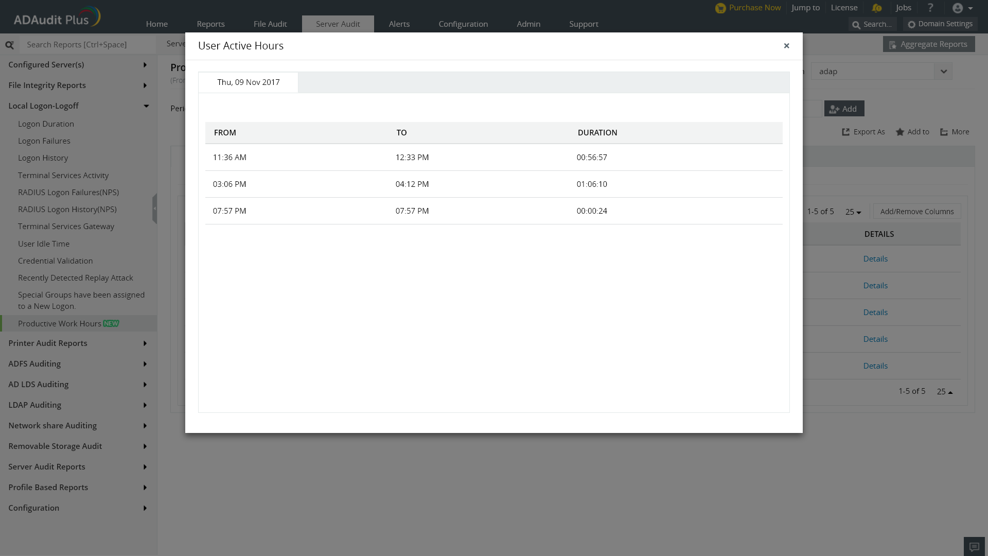 使用ADAudit Plus测量员工的有效工作时间