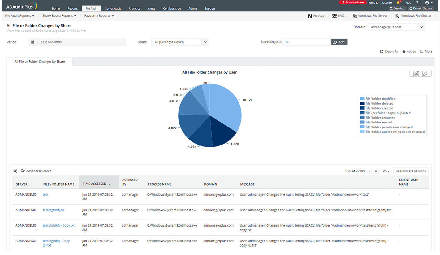 跟踪程序访问到实时文件和文件夹,并设置对您的关键关键任务的警告,您的Windows服务器文件,群集故障转移,NetApp,以及EMC环境。