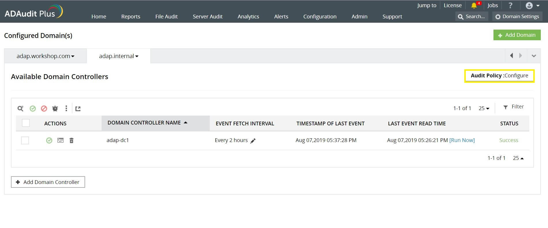 注意:ADAudit Plus可以自动配置GPO审核所需的审核策略。在上述步骤中单击“审核策略:配置”后,可以选择“是”以让ADAudit Plus自动配置所需的审核策略,也可以选择“否”以手动配置这些策略。