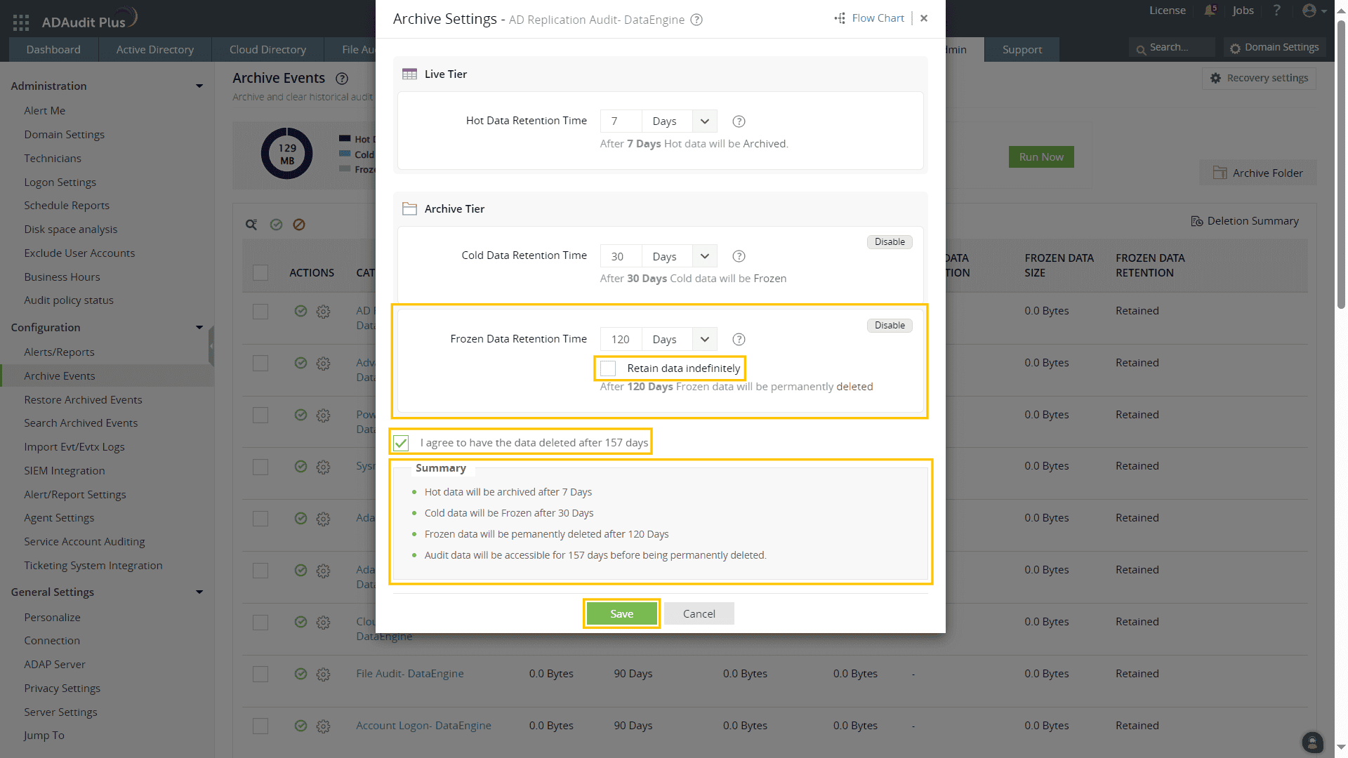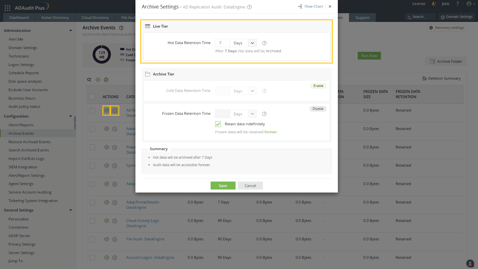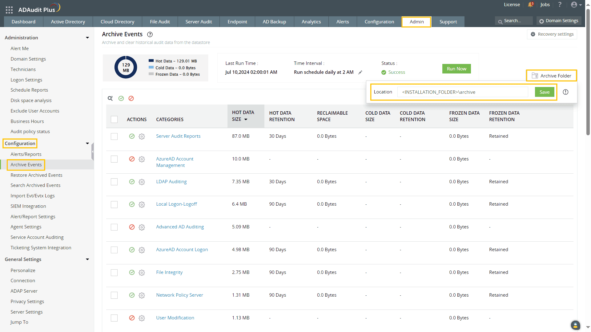 - 默认位置为<ADAudit Plus 安装文件夹>\archive